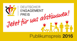 Durch die Auszeichnung mit dem „Grünen Band“ im Jahr 2015 wurde unser Verein von den Ausrichtern dieses Wettbewerbs, dem DOSB und der Commerzbank AG, für die Teilnahme am Deutschen Engagementpreis 2016 vorgeschlagen und somit nominiert. Der Vorstand hat daraufhin die Nominierung angenommen und im Juli die umfangreichen Unterlagen ausgefüllt und eingereicht. Vor zwei Wochen hat dann die Jury des Deutschen Engagementpreises getagt und die Preisträgerinnen und Preisträger gewählt. Leider zählen wir nicht zu den Ausgewählten in den fünf Kategorien. Damit ist die Teilnahme am Wettbewerb allerdings noch nicht vorbei! Alle Wettbewerbsteilnehmer, die nicht zu den Gewinnern des Engagementpreises 2016 gehören, nehmen automatisch an der öffentlichen Online-Abstimmung zum Publikumspreis, der mit 10.000 € dotiert ist, teil. Die Abstimmung läuft vom 19.09.2016 bis zum 31.10.2016 unter www.deutscher-engagementpreis.de/publikumspreis.