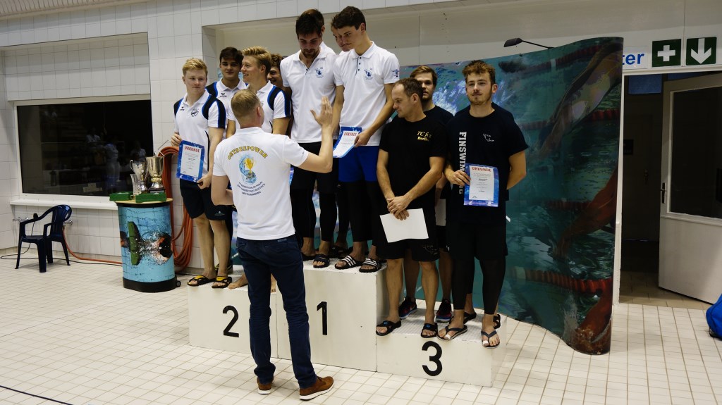 2:27.31 Minuten später ist der erste Wettkampftag des 50. Pokals der Hansestadt Rostock im Finswimming abgeschlossen. Der TSC Rostock siegt mit einer Körperlänge Vorsprung vor Nemo Plauen (inoffizielle Information). Morgen geht es um 13:00 Uhr weiter.