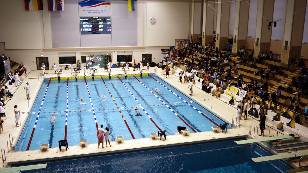 Die Wettkämpfe werden zügig und bisher ohne Probleme absolviert. Hier zahlen sich gute Organisation, bestes Zusammenspiel aller Beteiligten und die jahrelange Erfahrung aus. Das 25-Meter-Becken der Neptungschwimmhalle in Rostock ist wie immer zum Pokal in stimmungsvolles Licht getaucht.