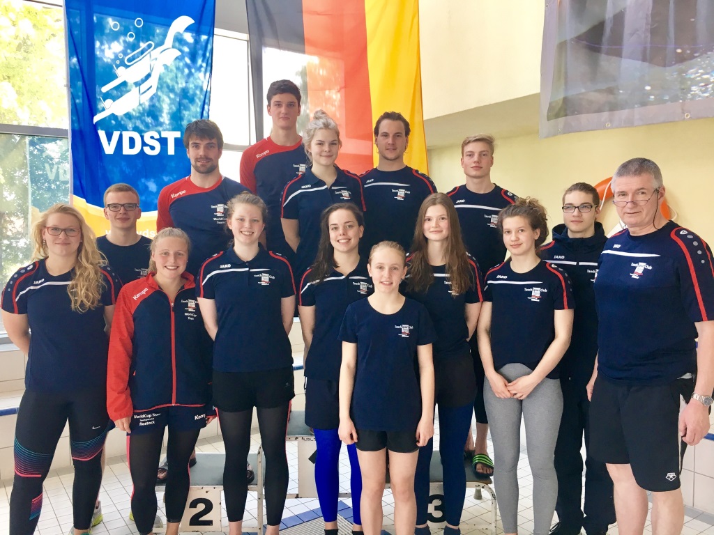 Eine Woche nach den deutschen Jugend- und Juniorenmeisterschaften konnten sich die Flossenschwimmer des TSC Rostock 1957 auch bei den Titelkämpfen der offenen Klasse sehr gut in Szene setzen. Mit insgesamt 17 Medaillen im Gepäck, darunter vier Titel, konnten die Hansestädter den Rückweg aus dem Berliner Sportforum antreten. Erfolgreichste Teilnehmerin aus Rostocker Sicht war Carolin Haase, die in den Einzelrennen insgesamt eine Gold- sowie zwei Silbermedaillen für sich verbuchen konnte und gemeinsam mit Lisa Dethloff, Delia Lübcke und Anne Eisenberg zudem in beiden Staffeln siegreich war. In der 4x50 Meter Staffel bedeutete die Siegerzeit zugleich einen neuen deutschen Rekord.