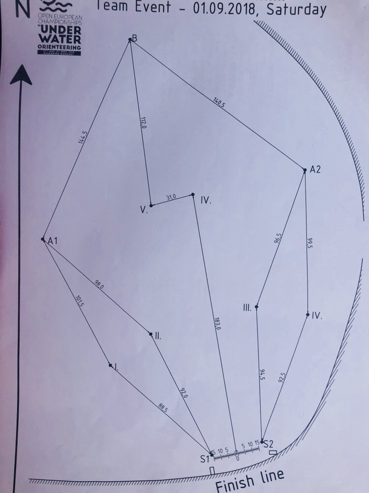 Am letzten Tag stand die Mannschaftstreffübung auf den Programm - auch als Königsdisziplin des Orientierungstauchens bekannt.  Da die Variante B geschwommen wurde, standen alle Teams vor einer besonders schwierigen Aufgabe. Hier treffen sich je zwei Sportler am A-Punkt, schwimmen weiter zum B-Punkt und über eine Schikane zurück auf das 2m-Zentrum. Jede weitere Abweichung wird mit Strafpunkten bewertet.