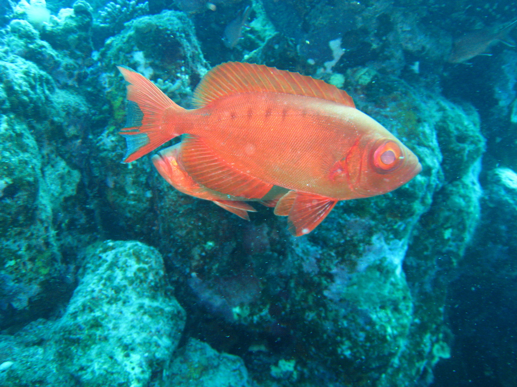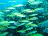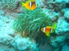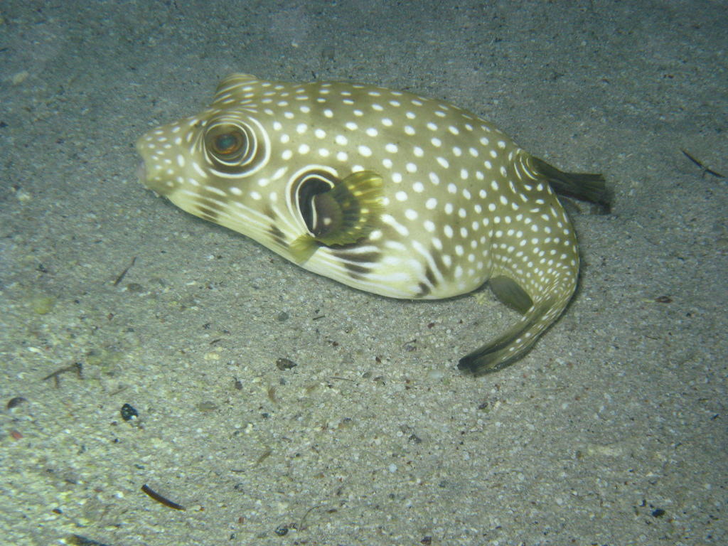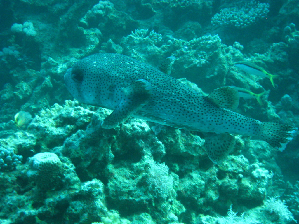 Highlights - berichte ich Freunden und Kollegen von der Reise werde ich immer nach "dem" Höhepunkt gefragt, aber den gibt es für mich nicht. Die Mehrheit der Reisegruppe wird wahrscheinlich das Ereignis am Ende des letzten Tauchganges als Highlight nennen. Wir hatten bereits die Bojen gesetzt, als meine Tauchgruppe völlig aus dem Häuschen geriet. Alle zeigten aufgeregt in meine Richtung - und ich hatte die Befürchtung, das Schlauchboot ist im Anmarsch und ich wäre zu dicht unter der Oberfläche... Zu meinem Erstaunen erblickte ich hinter mir jedoch kein Schlauchboot sondern eine große Gruppe Delphine!!! Elegant und unbeschreiblich schnell zogen sie an uns vorüber... Auftauchen, ins Schlauchboot und hinterher... erfolglos, keine Chance die flinken Tiere einzuholen. Wieder ins Boot, wieder hinterher - überholen und abtauchen - da kommen sie!!! 18 Delphine, teilweise Mütter mit Jungtieren, tauchen erneut unter uns durch. Abends erfahre ich, dass diese Treffen durchaus etwas besonderes ist, ABU Torsten hat schon mehrere 100 Tauchgänge ohne einen einzigen Delphin absolviert, für mich war es erst der 39. Aber auch die 11 vorangegangenen Tauchgänge waren durchaus interessant und erlebnisreich. Wo soll ich anfangen, was ist vielleicht nicht so aufregend? Blaupunktrochen, Feuer-, Lion-, Kugel-, Flötenfische, Nemos... Muränen, richtige Prachtexemplare, vor denen sogar Maradona Respeckt hatte, Diademseeigel bei meinem ersten (!) Nachttauchgang, ausgewachsene Schildkröten, Gitarrenhai, Napoleonfisch - Leute fahrt alleine hin, es ist eine Wucht. Ach-so, ein Tip an alle Einstern-Taucher, 90 Prozent könnt ihr direkt am Hausriff bzw. bei einfachen Tauchgängen sehen. Für schwierigere Spots sind allerdings 50 Tauchgänge und Zweistern Voraussetzung um z.B. dem Hammerhai die Zähne zu zeigen.
