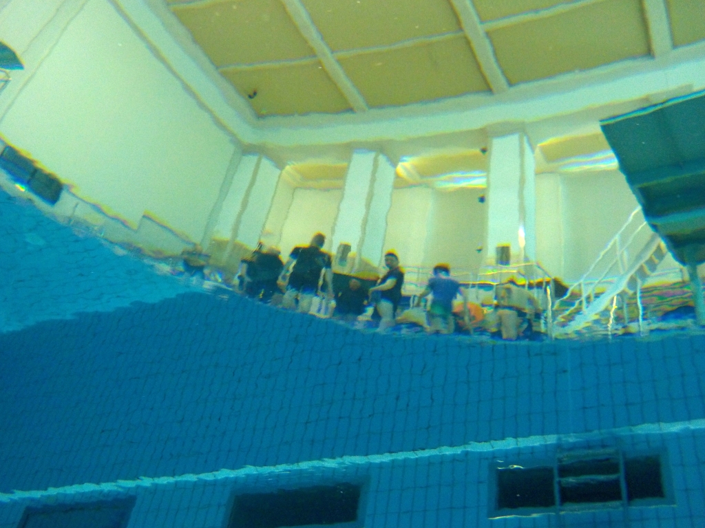 Nun gestalltete sich an zwei Wochenende im April ein spannendes Programm aus Theorie und Praxis. Die zu besprechenden Themen waren vielfältig und aus den unterschiedlichsten Bereichen: Tauchphysik, Tauchmedizin, Tauchtechnik, Organisation und Sicherheitsbestimmungen. Zum Glück gab es immer wieder auch ausreichend Zeit Gelerntes gleich in die Praxis umzusetzen und erste Erfahrungen unter idealen Bedingungen im 4,80 Meter tiefen Sprungbecken unter Aufsicht erfahrener Ausbilder zu sammeln. Neben den ersten Übungen mit dem Tauchgerät kam das Konditionstraining und Überungen mit Flossen, Maske und Schnorchel dazu. So waren die Tage gut gefüllt und alle waren am Ende besten vorbereitet für den ersten Tauchgang im Freiwasser.